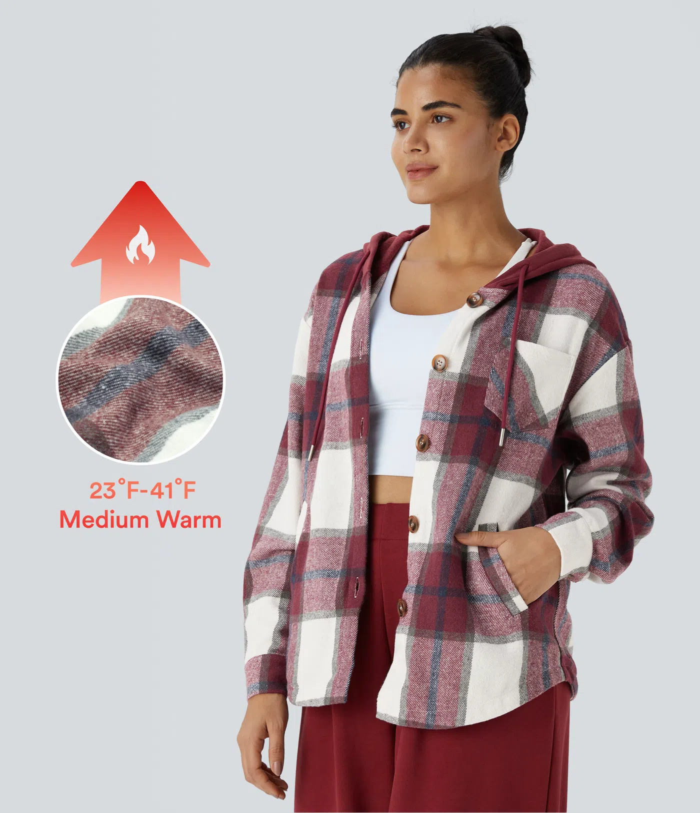 Chaqueta polar a cuadros con capucha y bolsillos