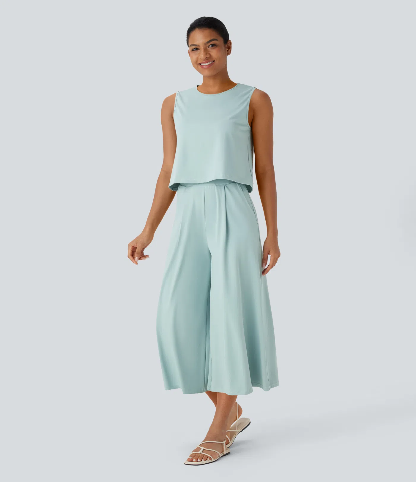 Conjunto de top sin mangas y pantalón capri ancho con bolsillos