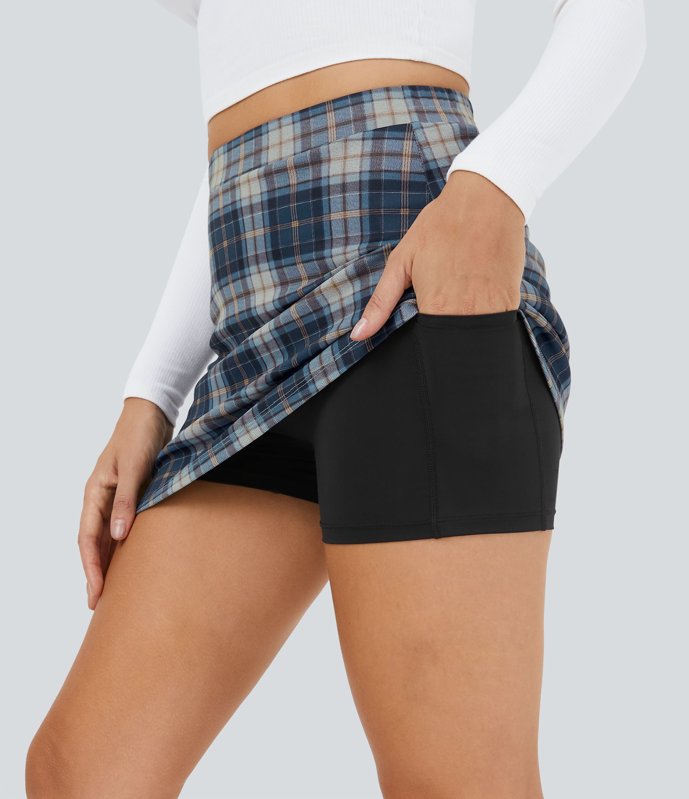Minifalda casual 2 en 1 con bolsillo lateral a cuadros y cintura alta