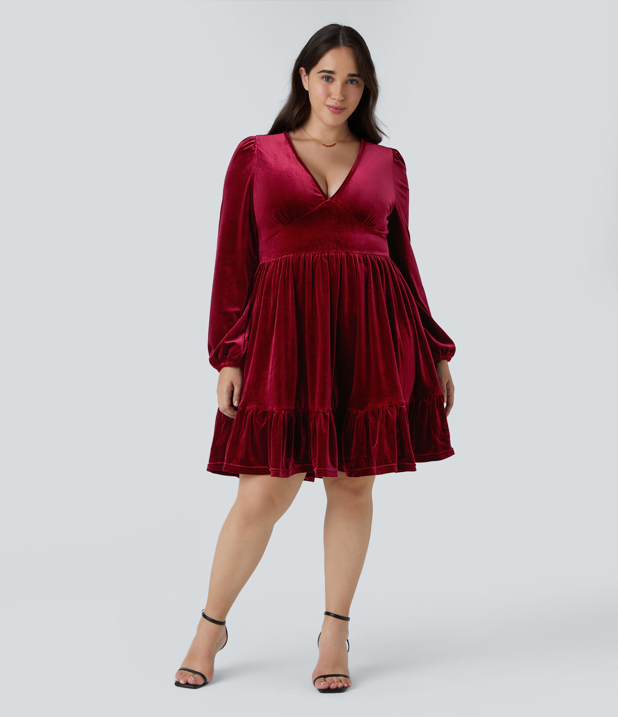 Vestido de terciopelo con escote en V de talla grande