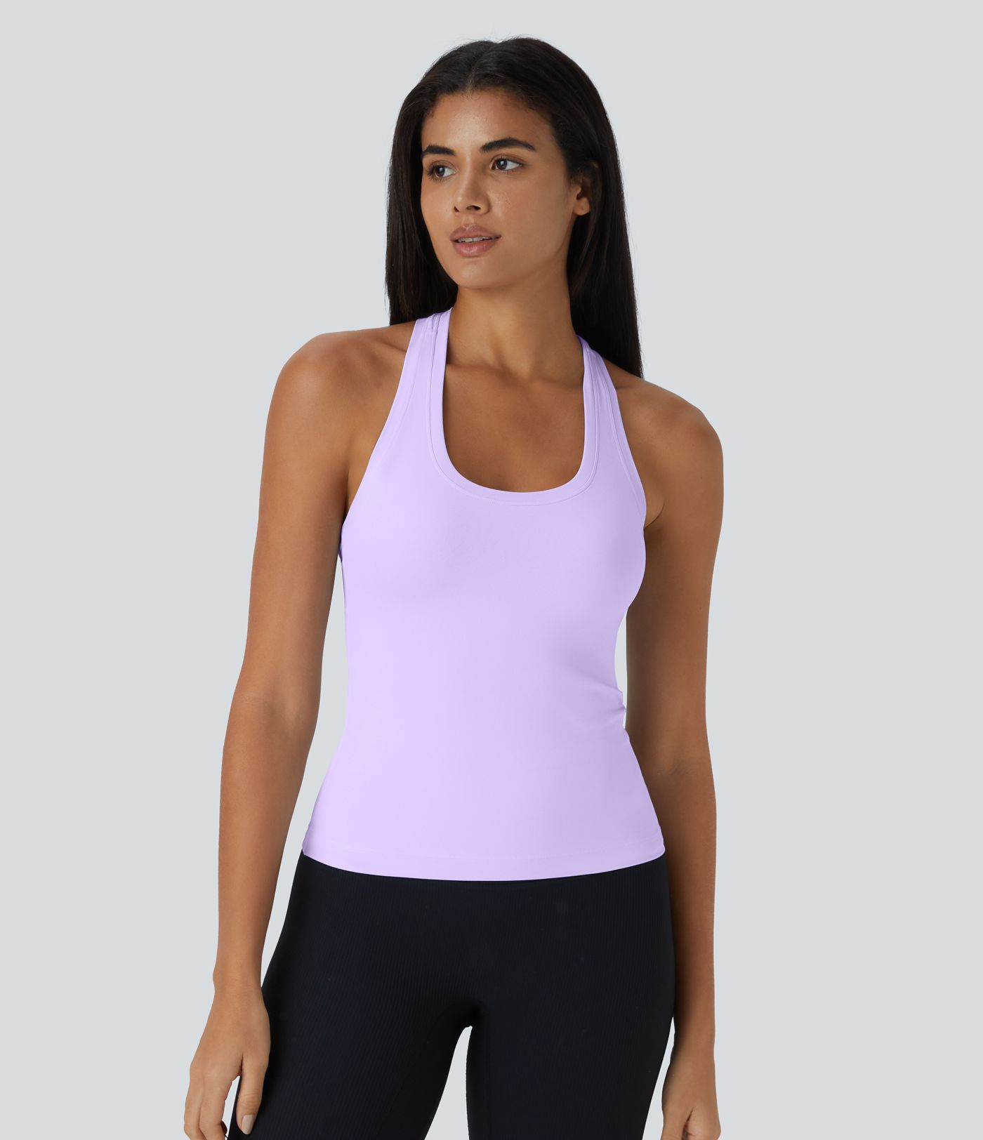 Camiseta sin mangas entrenamiento espalda cruzada cuello U elástico sólido