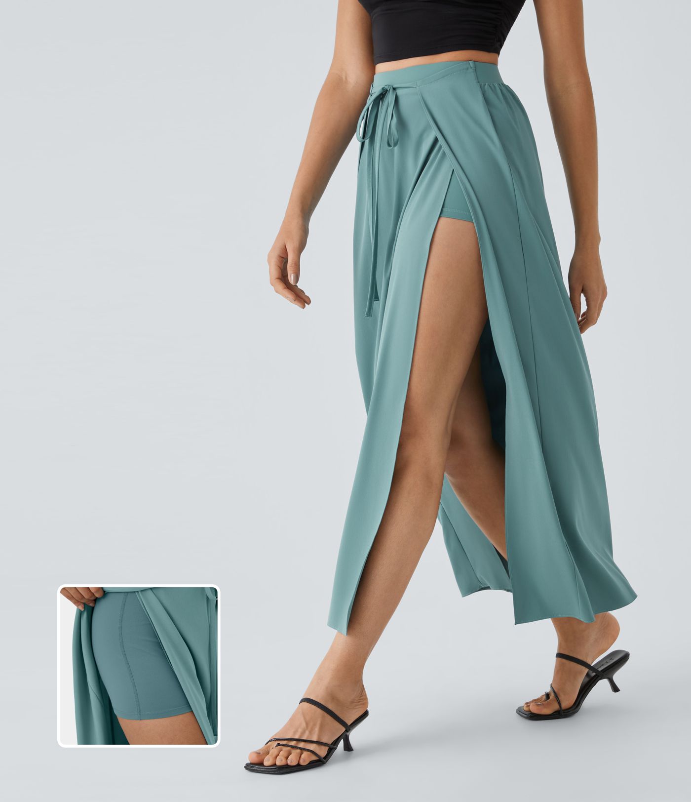 Breezeful™ Falda maxi secado rápido fluida abertura plisada lazo delantero 2 en 1