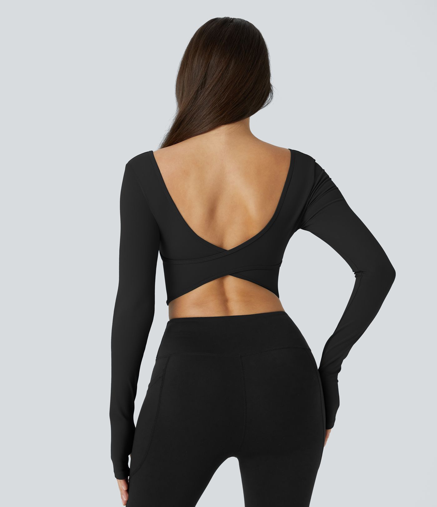 Top deportivo yoga cuello U sin espalda cruzado abertura pulgar