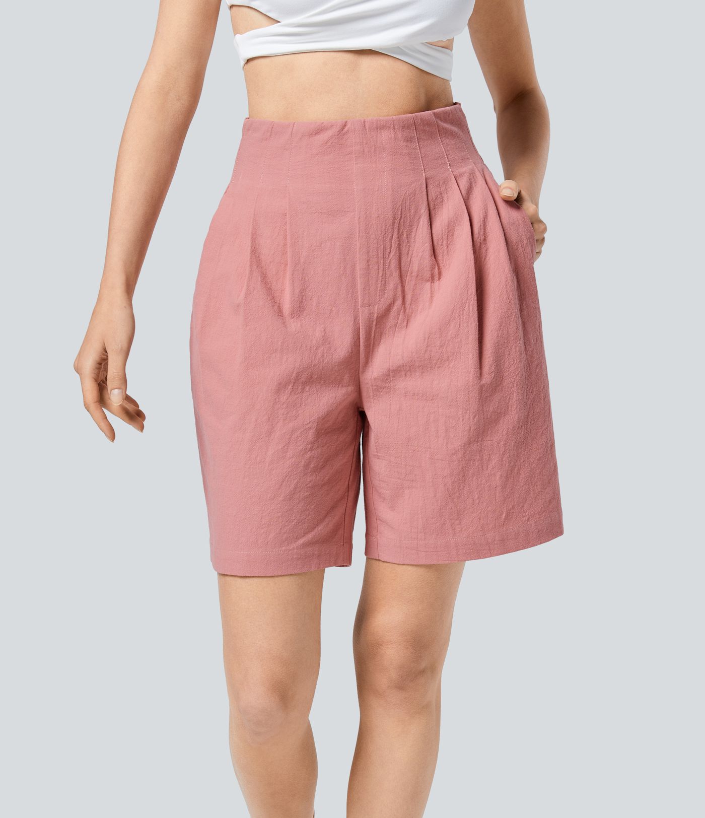 Shorts algodón vacación bolsillo lateral plisado fruncido tiro alto