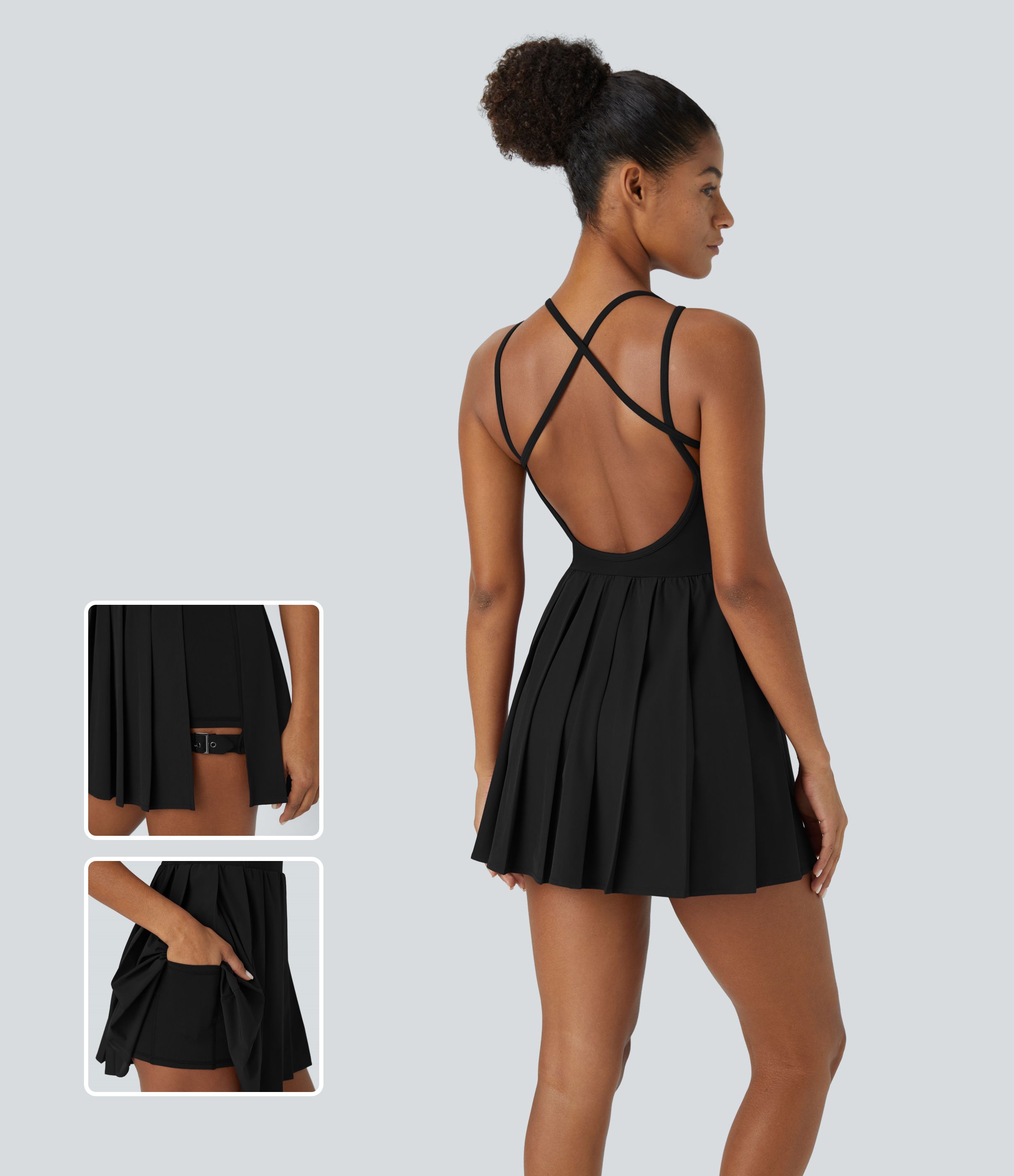 Minivestido Breezeful™ activo secado rápido bolsillo 2 en 1 plisado sin espalda