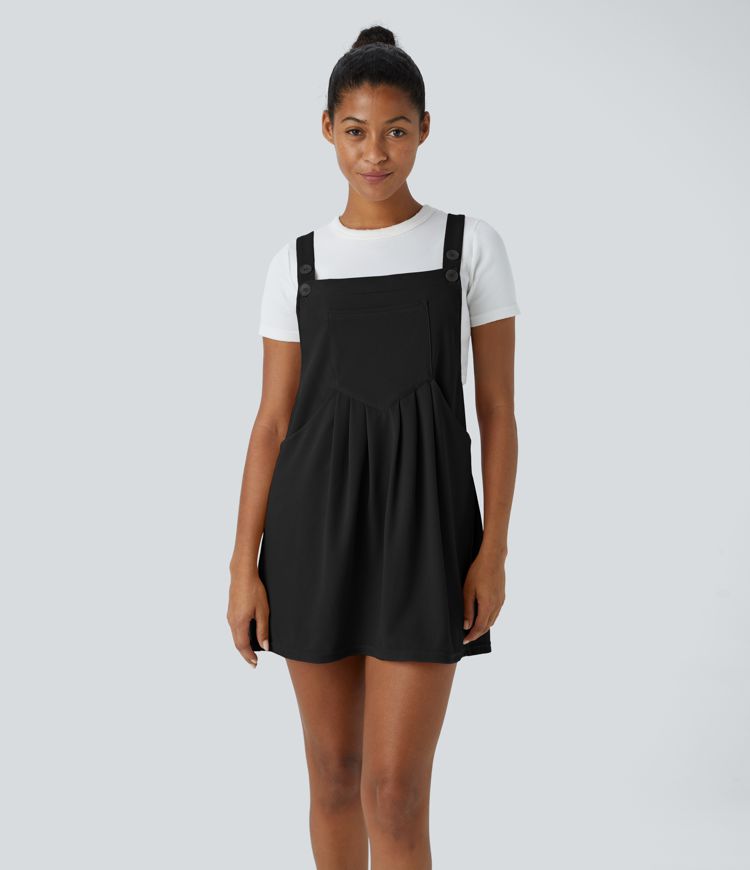 Vestido pichi tirante ajustable botones múltiple bolsillo plisado gofre