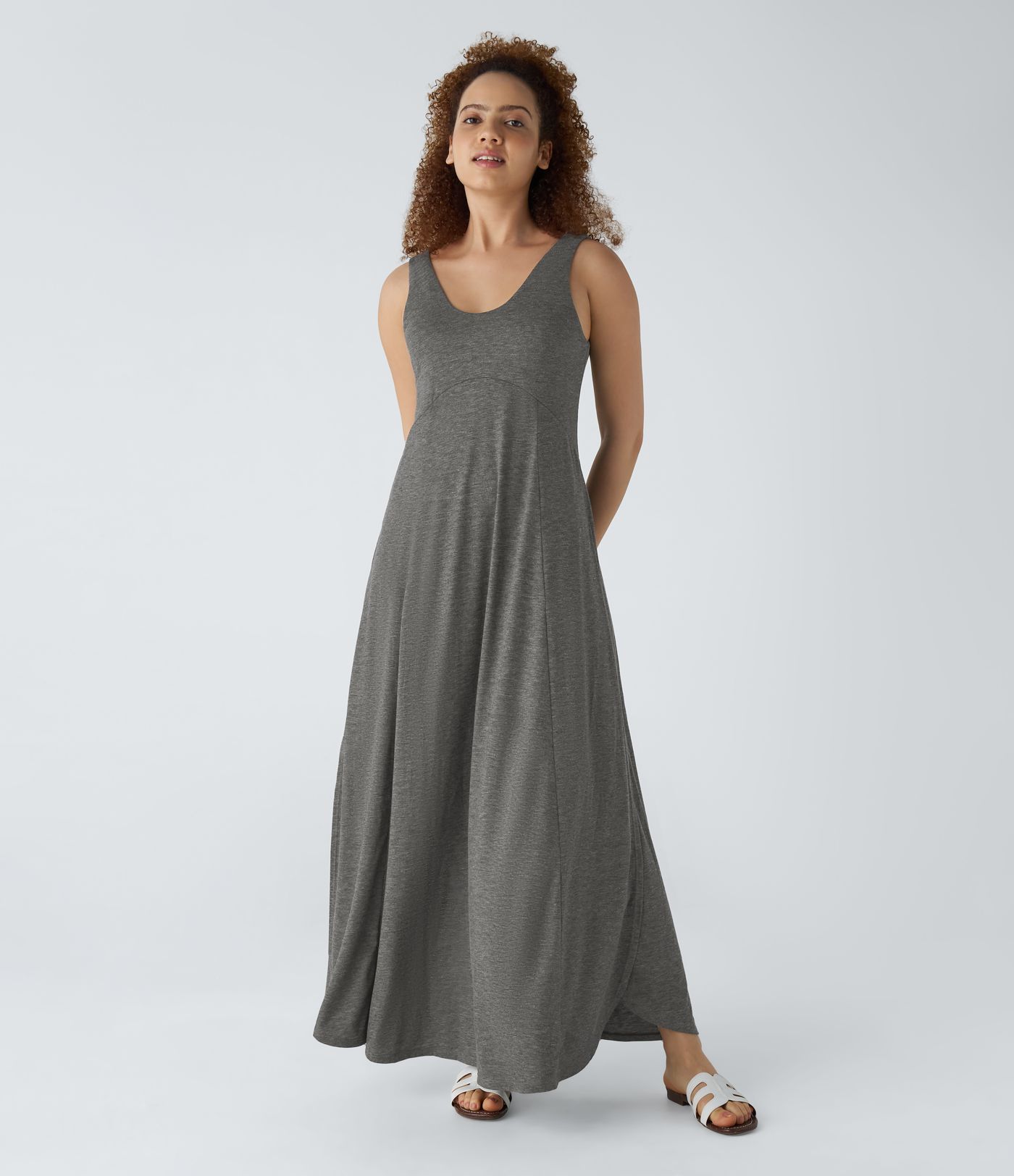 Vestido sin mangas largo fluido dividido sin espalda cuello U