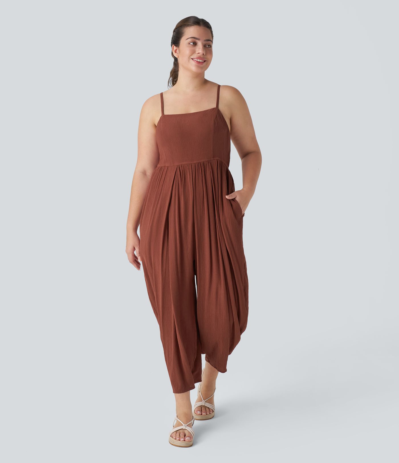 Mono tirante fino sin espalda cordón bolsillo lateral plisado talla grande