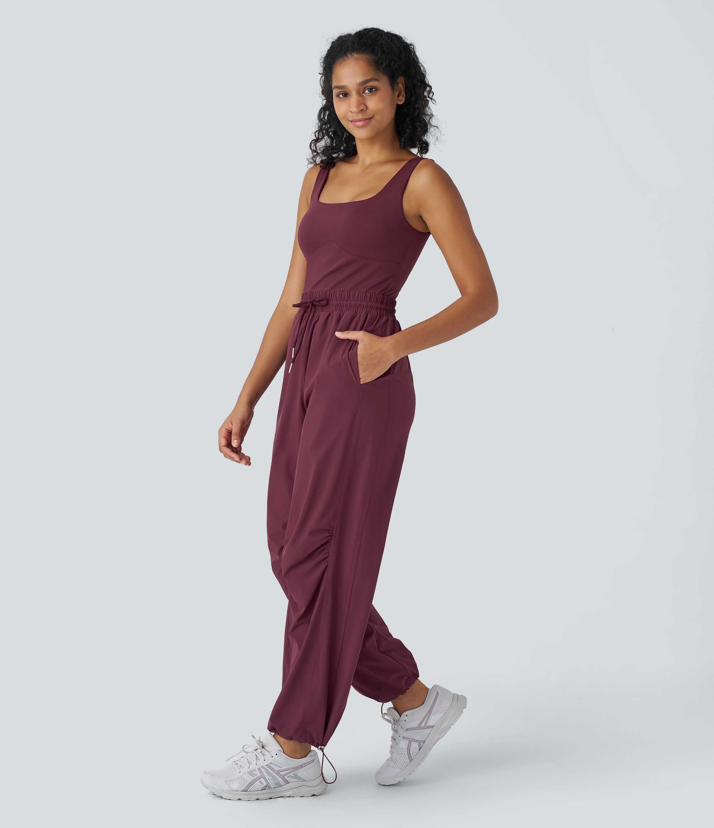 Mono Breezeful™ secado rápido cuello cuadrado sin espalda cordón bolsillo lateral cordón ajustable