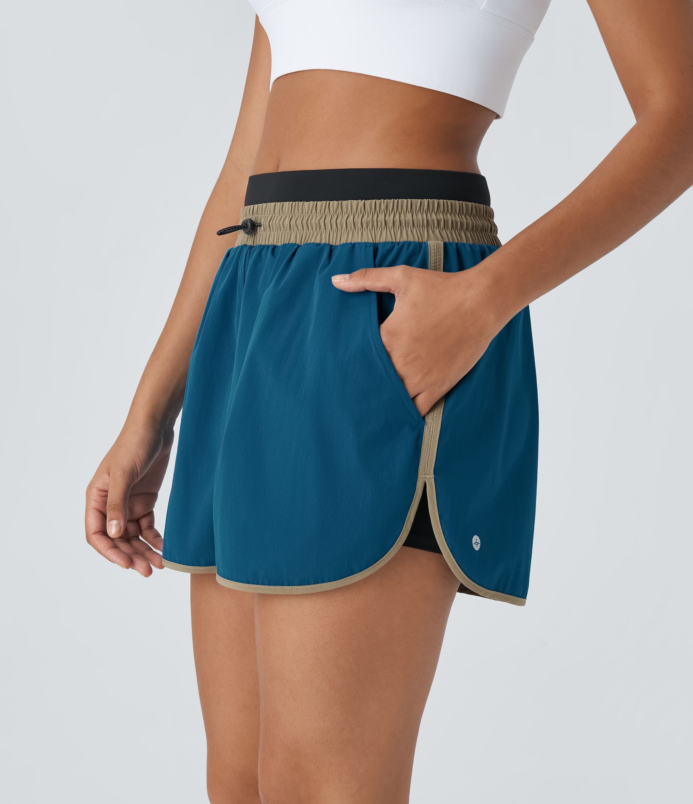 Pantalón corto senderismo 2 en 1 dobladillo curvo tiro medio bloque color reflectante cordón ajustable múltiple bolsillo
