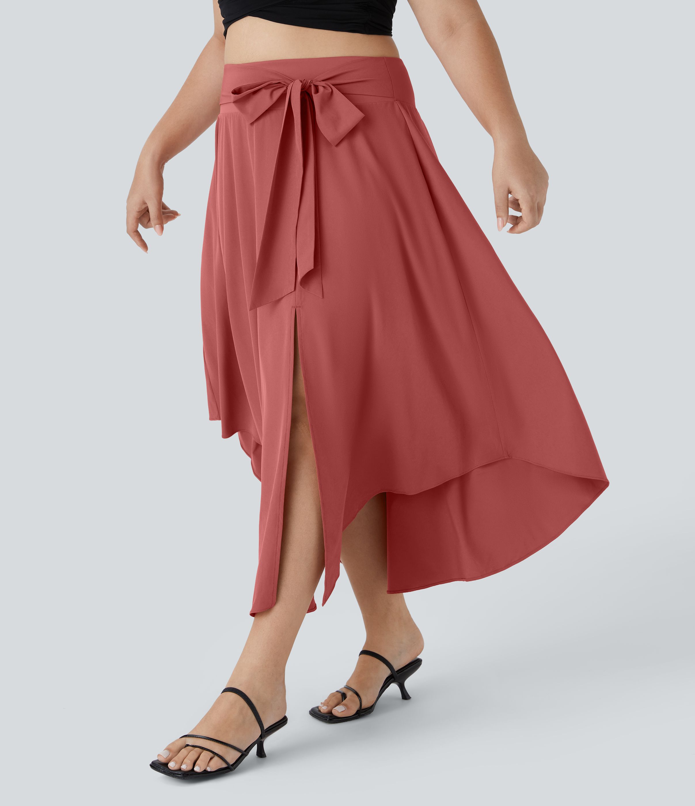 Falda midi Breezeful™ talla grande 2 en 1 abertura lateral tiro alto dobladillo curvo fluida secado rápido