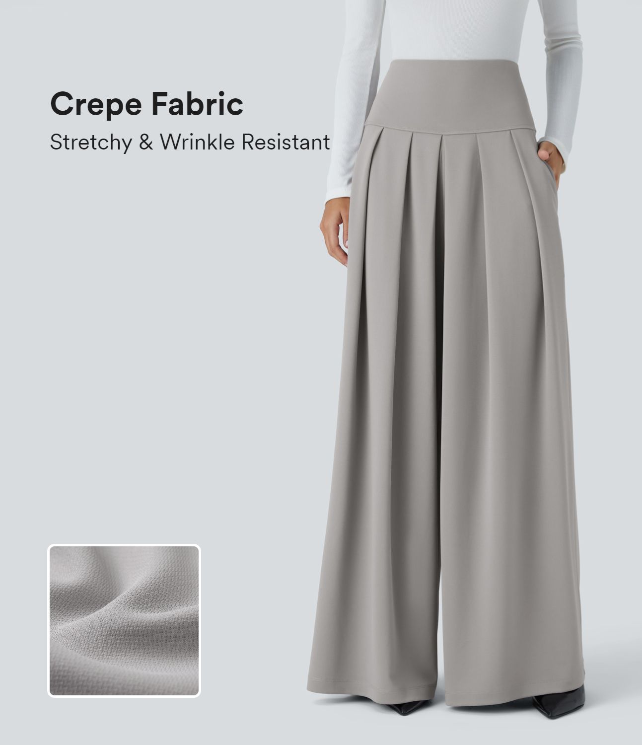 Pantalón oficina crepé pierna ancha plisado bolsillo lateral tiro súper alto