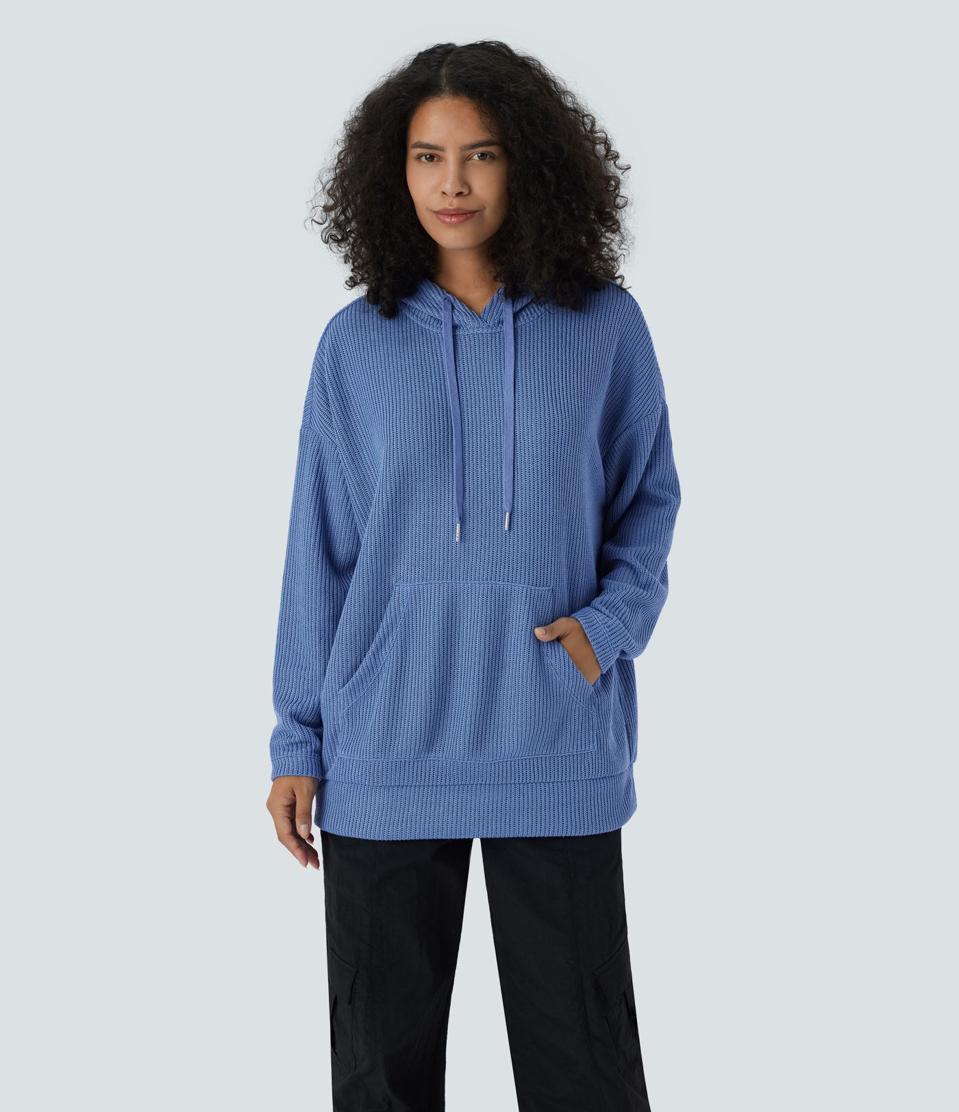 Sudadera gran tamaño capucha cordón ajustable hombro caído bolsillo canguro