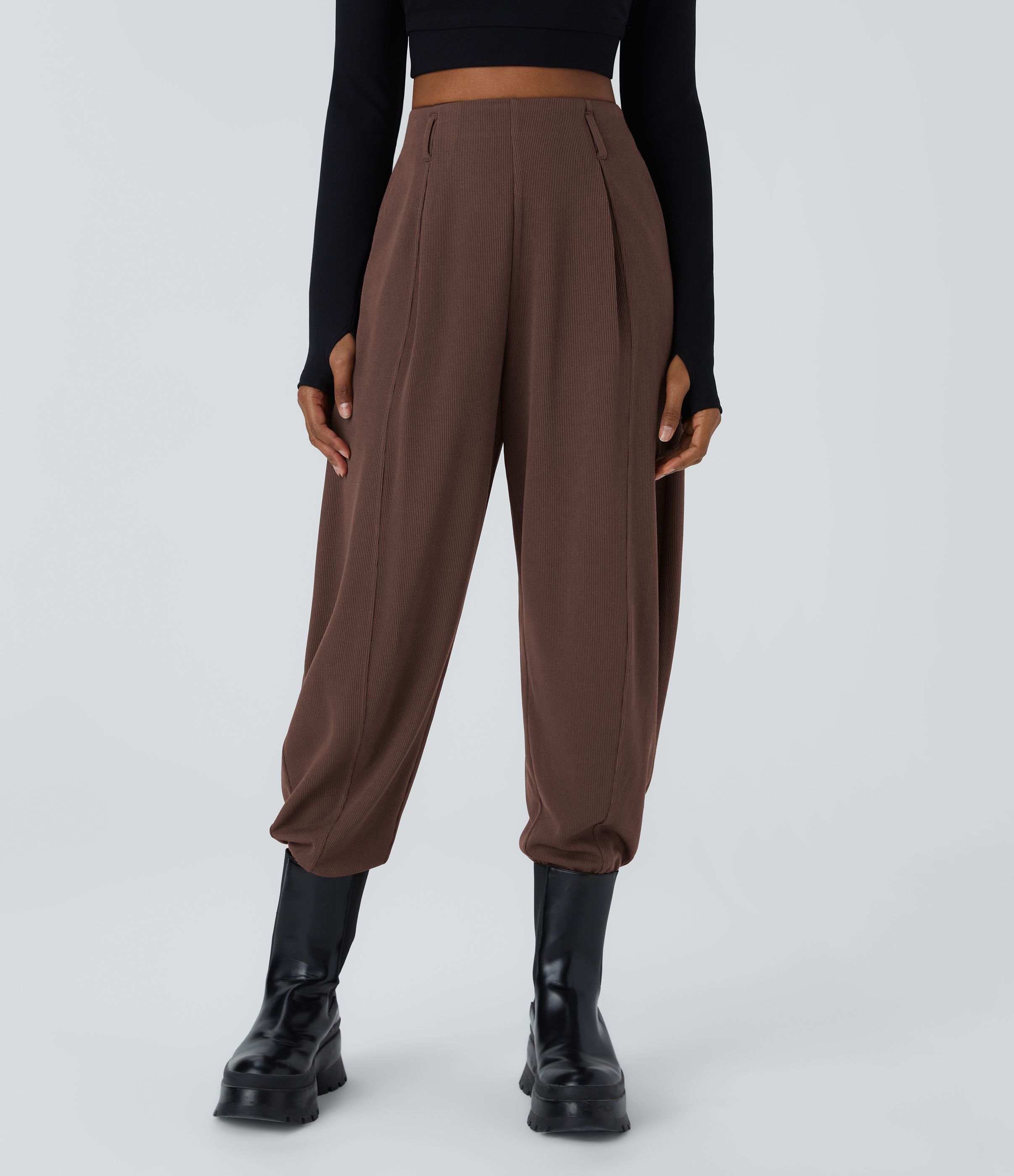 Pantalón deportivo tiro alto dobladillo ajustable bolsillo lateral acanalado