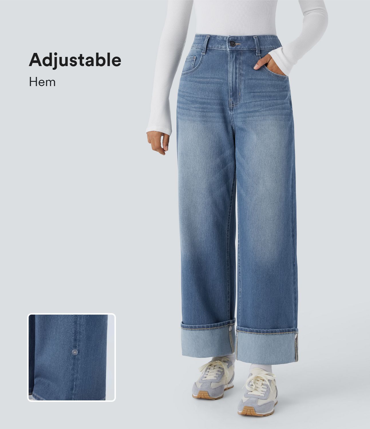 Jeans Halara Flex™ Denim elástico lavado pierna ancha tiro alto múltiple bolsillo dobladillo ajustable