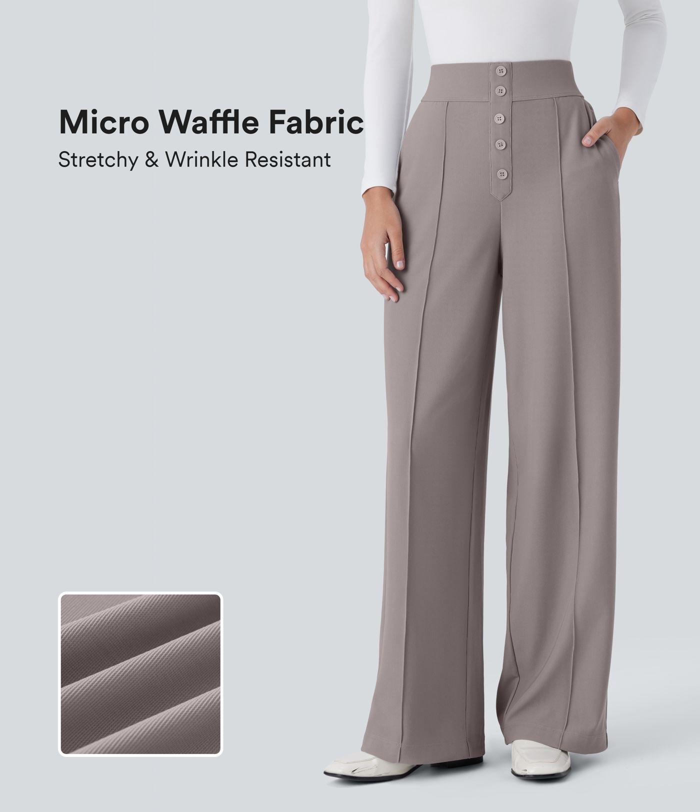 Pantalón Halara Flex™ oficina tiro alto bolsillo lateral botón decorativo pierna recta microgofre