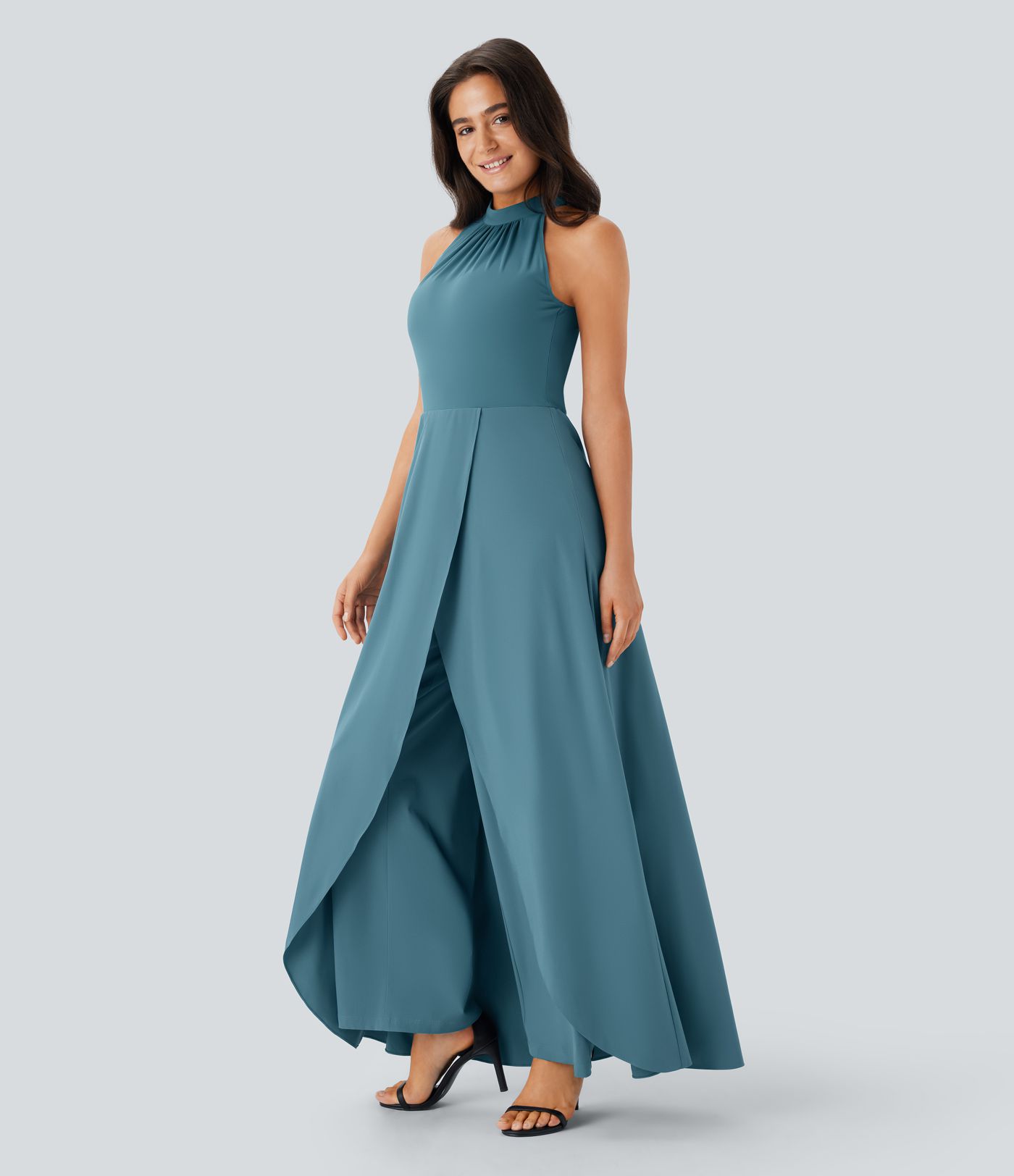 Mono Breezeful™ holgado secado rápido pierna ancha bolsillo lateral cremallera invisible cuello halter