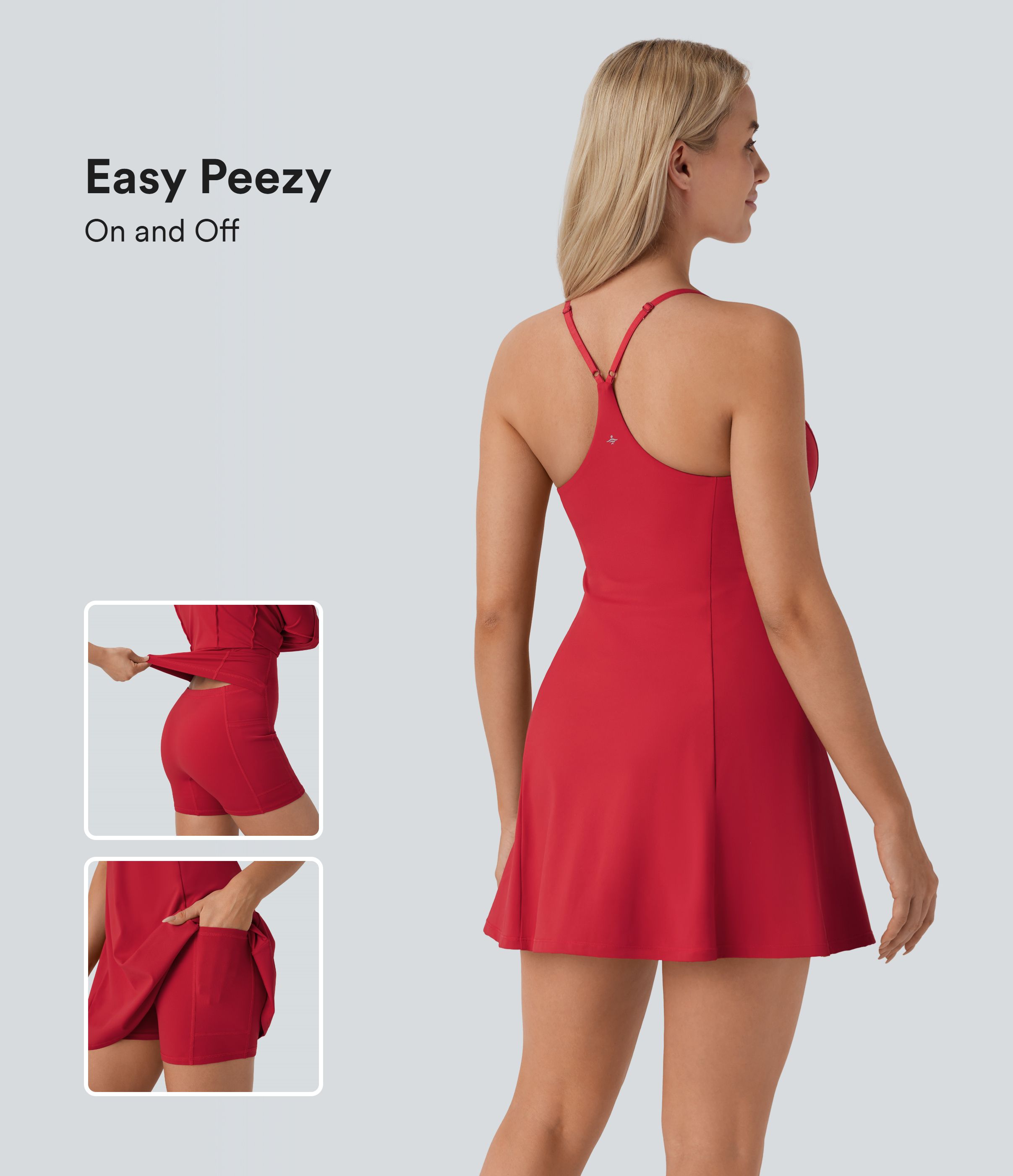 Vestido mini Softlyzero™ baile activo vuelo tacto fresco 2 en 1 espalda cruzada tirante ajustable bolsillo lateral - edición Easy Peezy