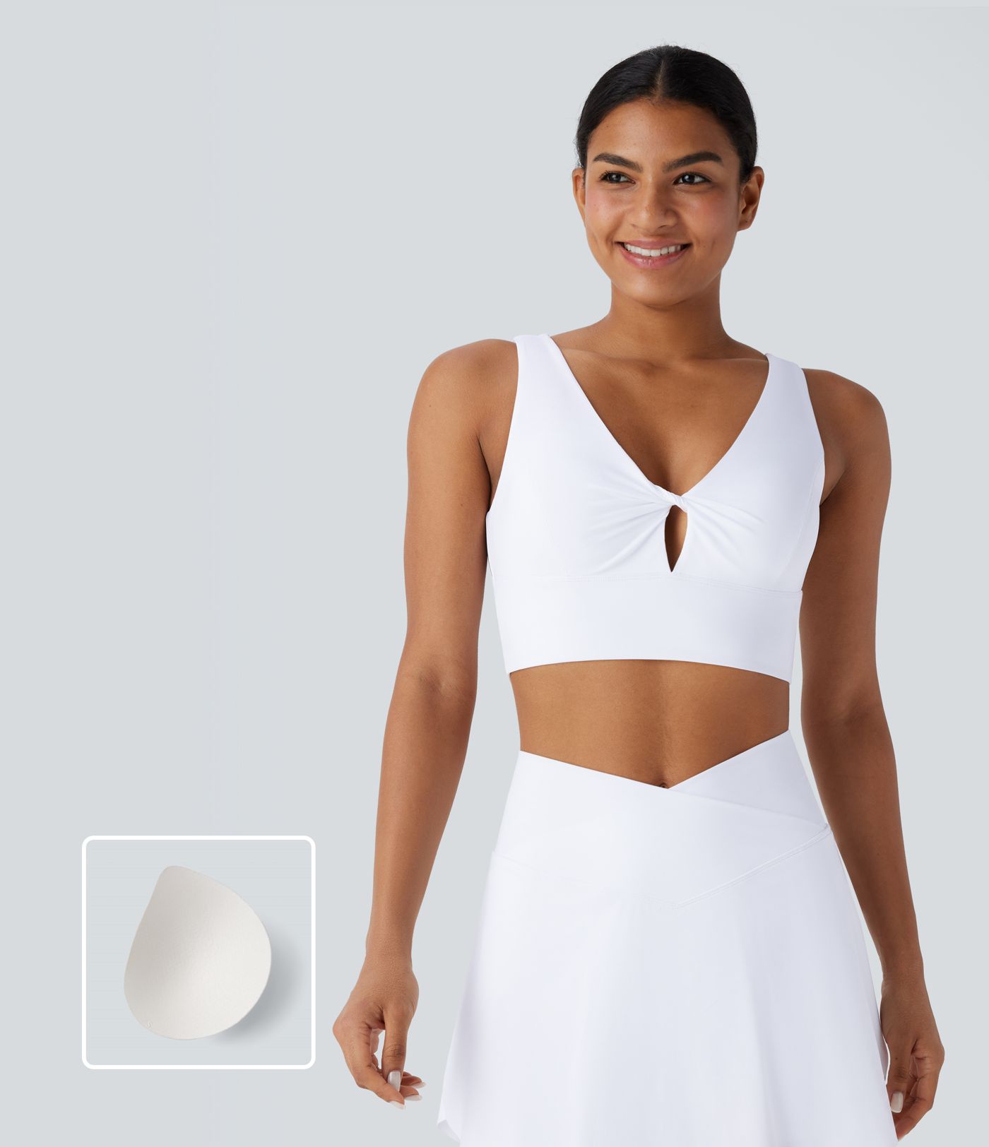 Sujetador deportivo secado rápido cuello V bajo soporte corte torcido sin espalda tacto fresco