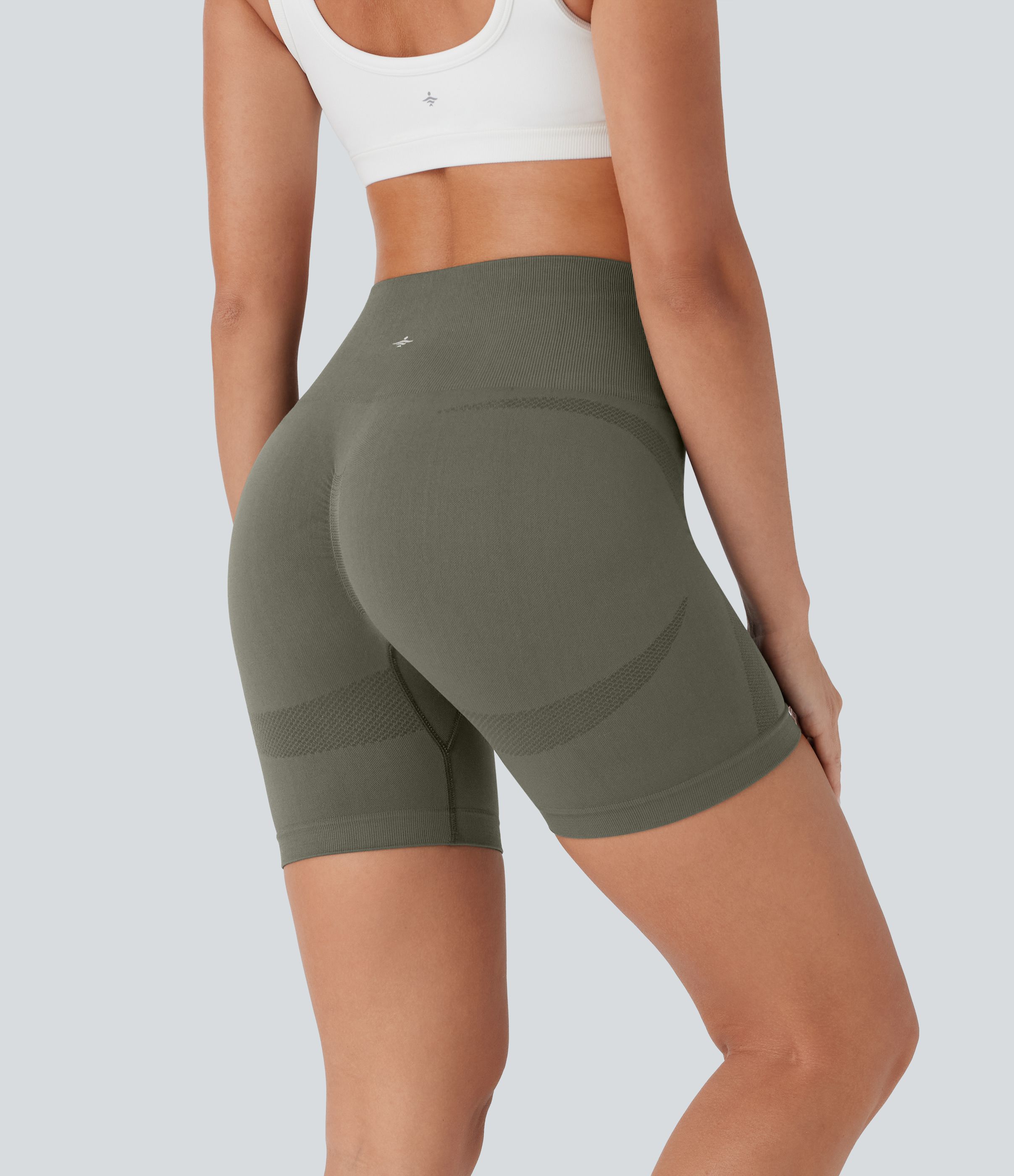 Shorts de yoga tipo biker de tiro alto sin costuras y con detalles fruncidos