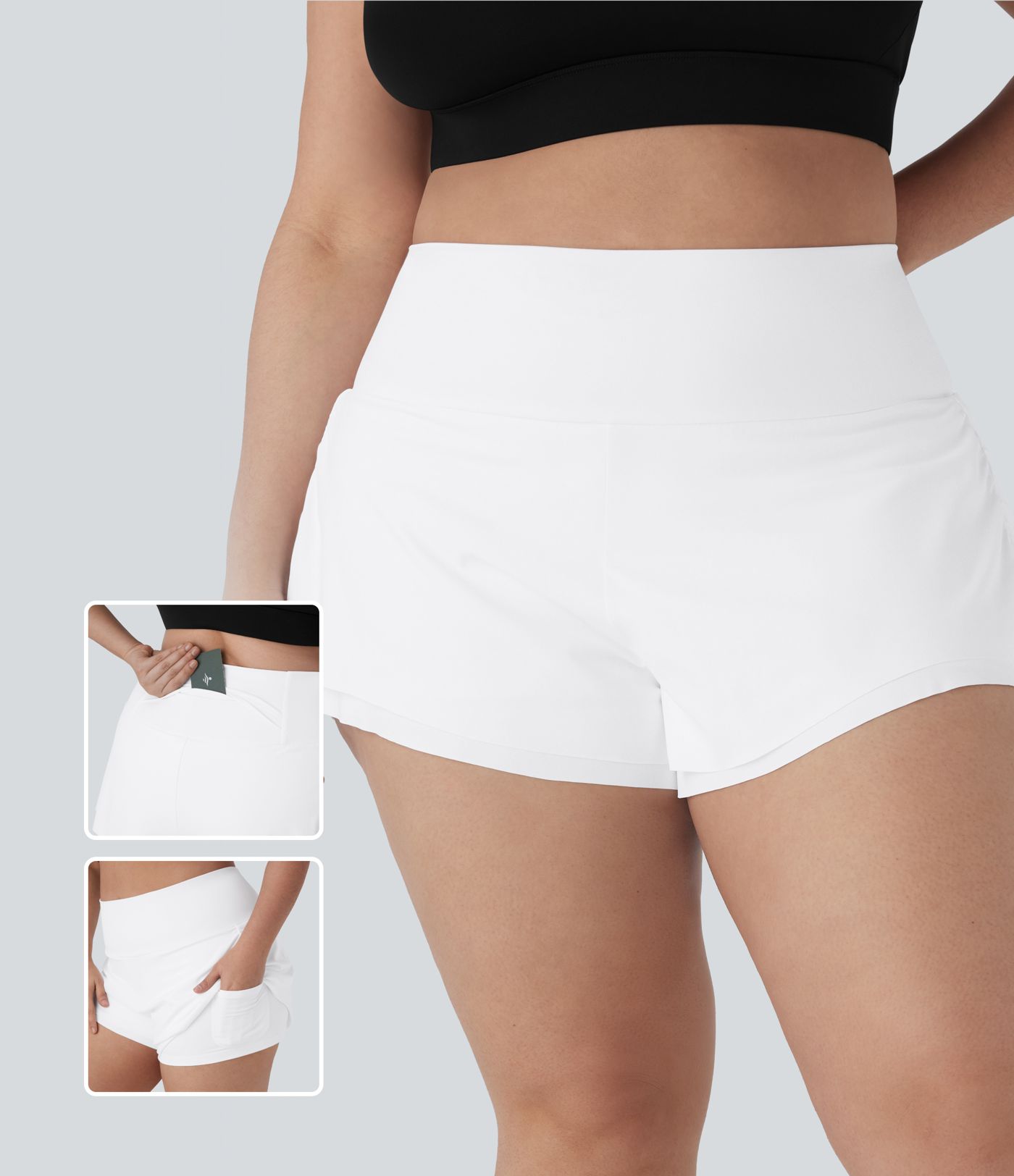 Shorts de yoga Softlyzero™ Airy de tiro alto con fruncido, dobladillo curvo de tacto fresco con bolsillos en tallas grandes