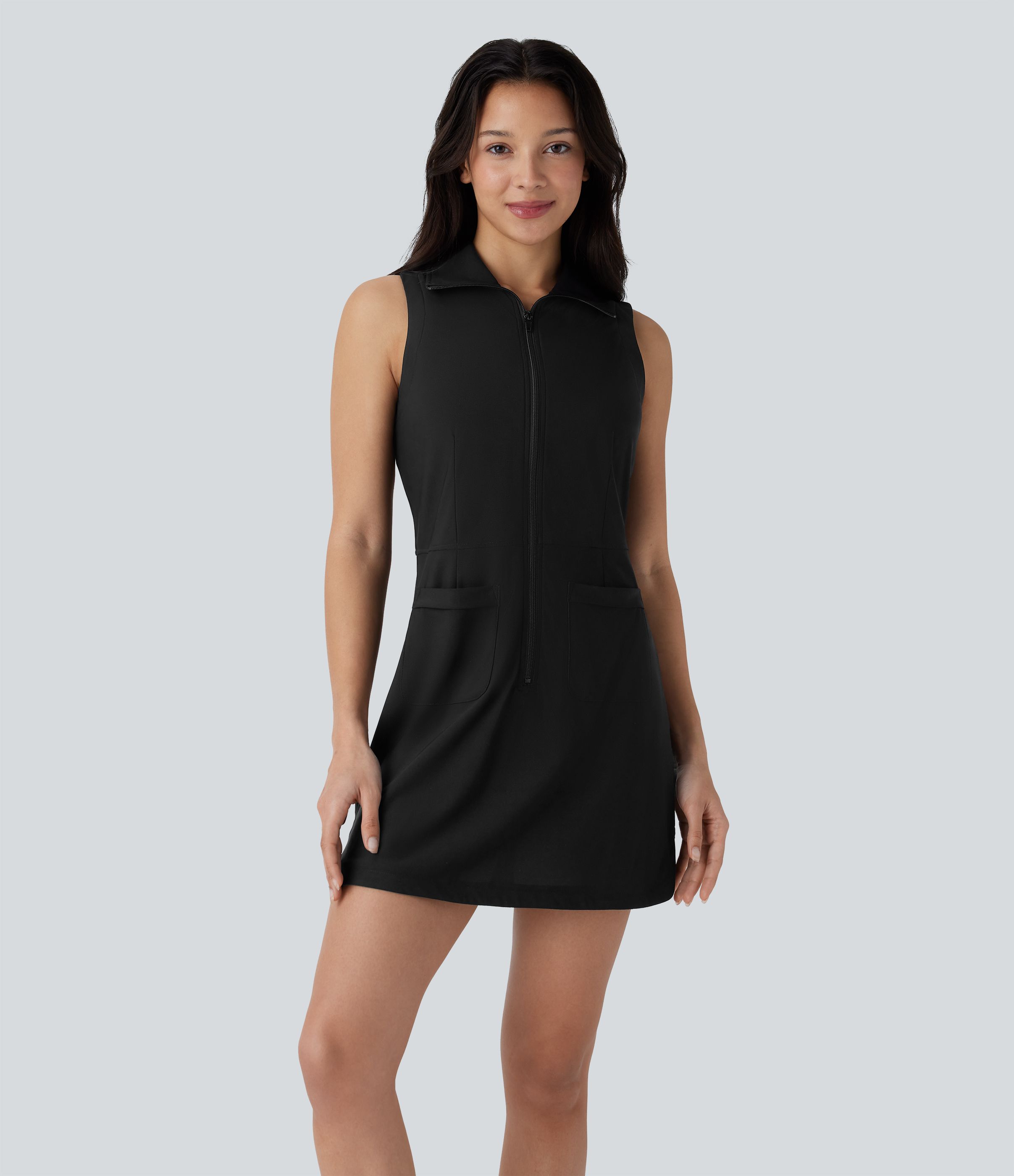 Mini Vestido deportivo golf cuello sin mangas cierre cremallera bolsillo lateral dobladillo curvo tacto agradable