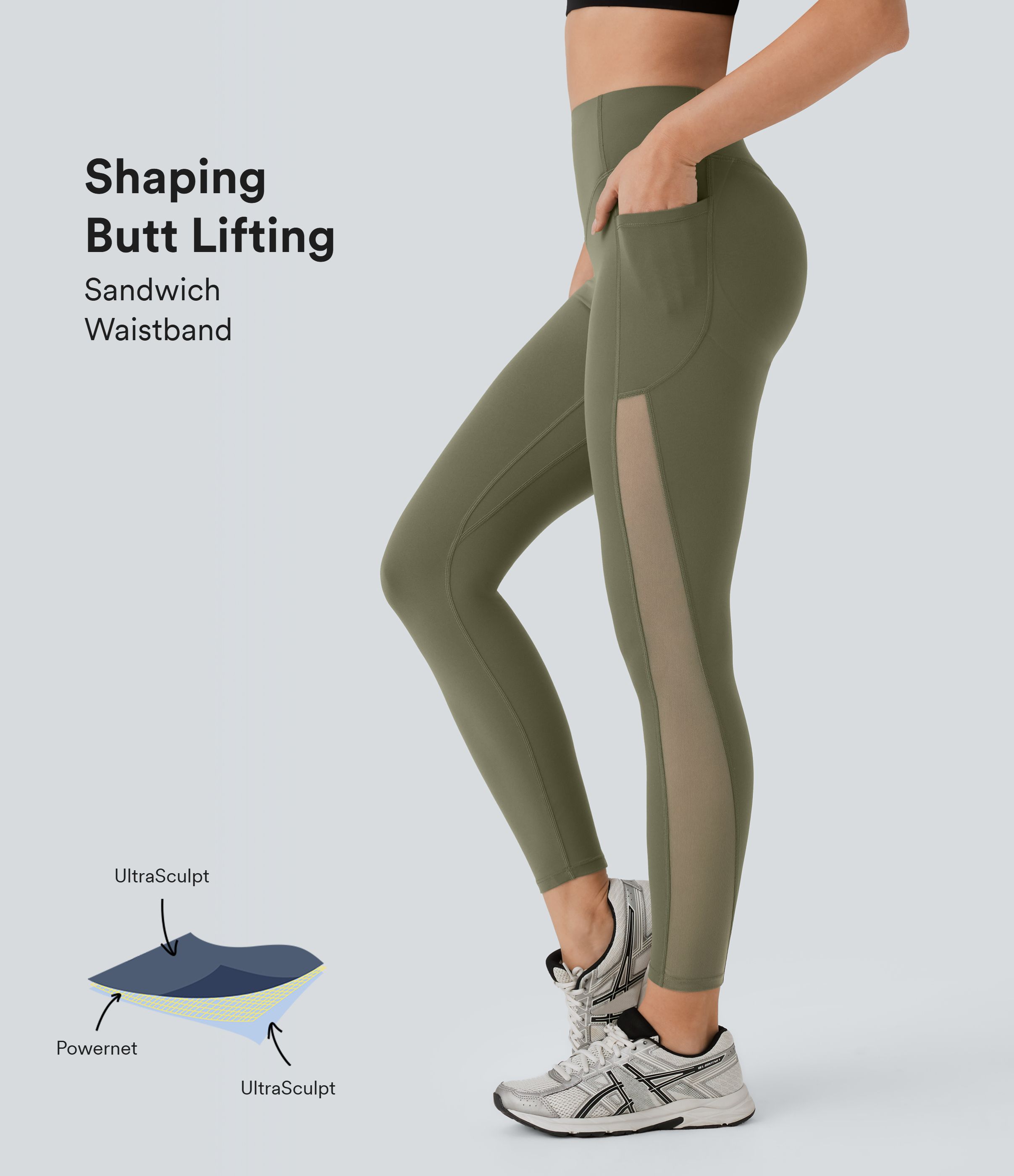 Leggings SoCinched Halara UltraSculpt™ deportiva tiro alto realce glúteos control abdomen bolsillo lateral malla contrastante