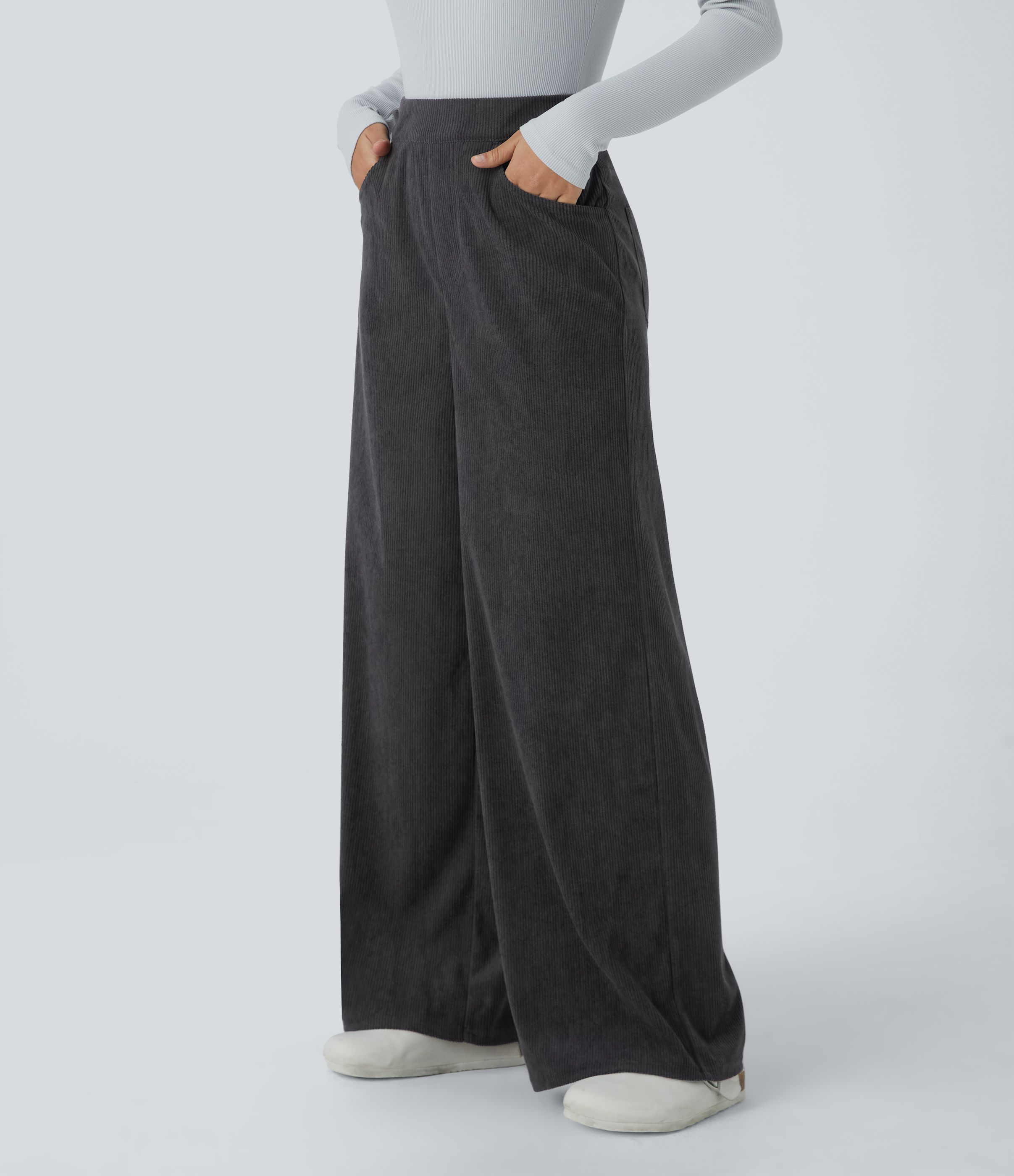 Hohe Taille Taschen Weite Bein Cord Arbeitshose