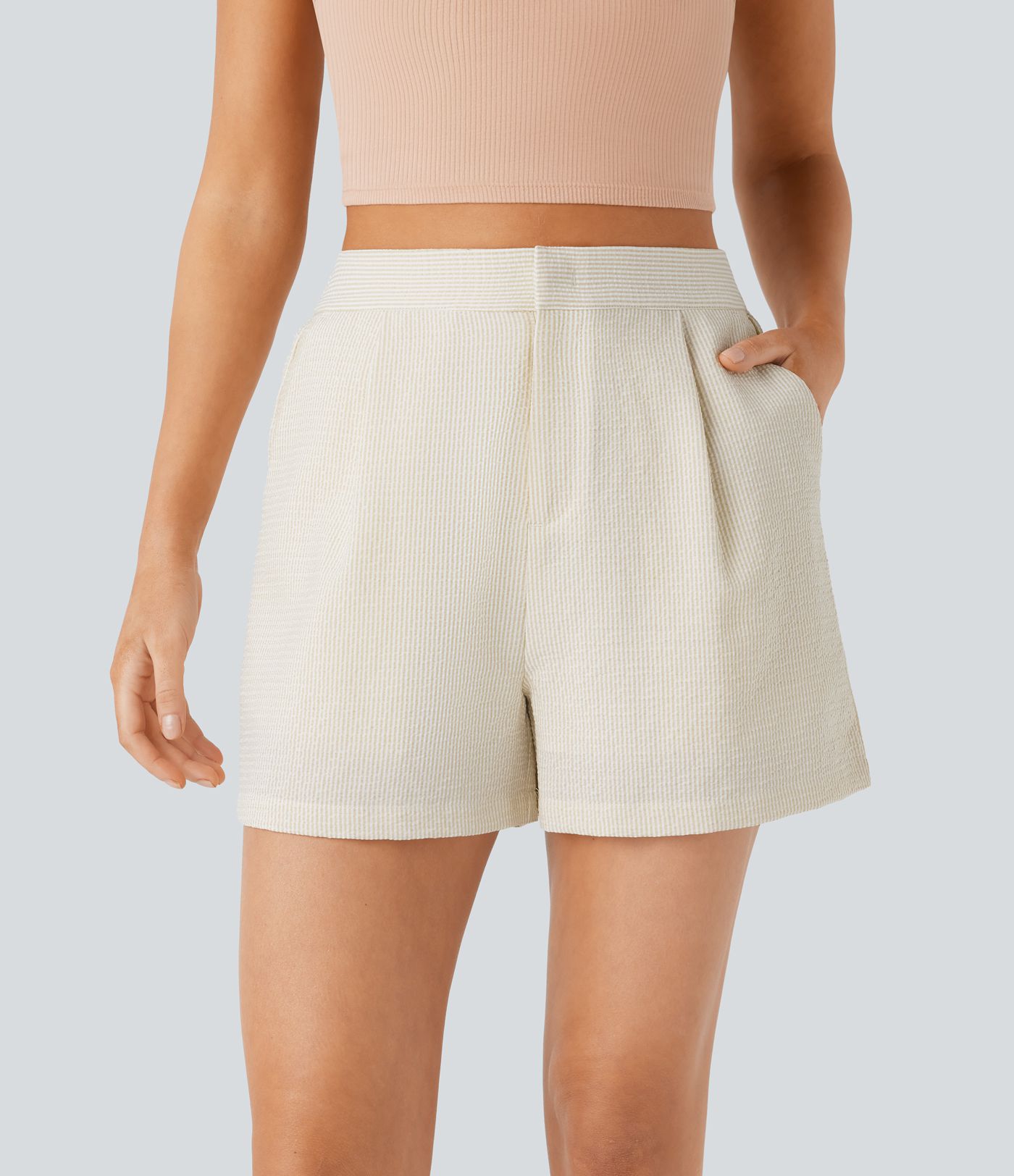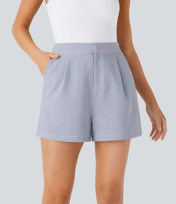 Pantalón corto tiro alto cremallera bolsillo lateral raya 7.5cm