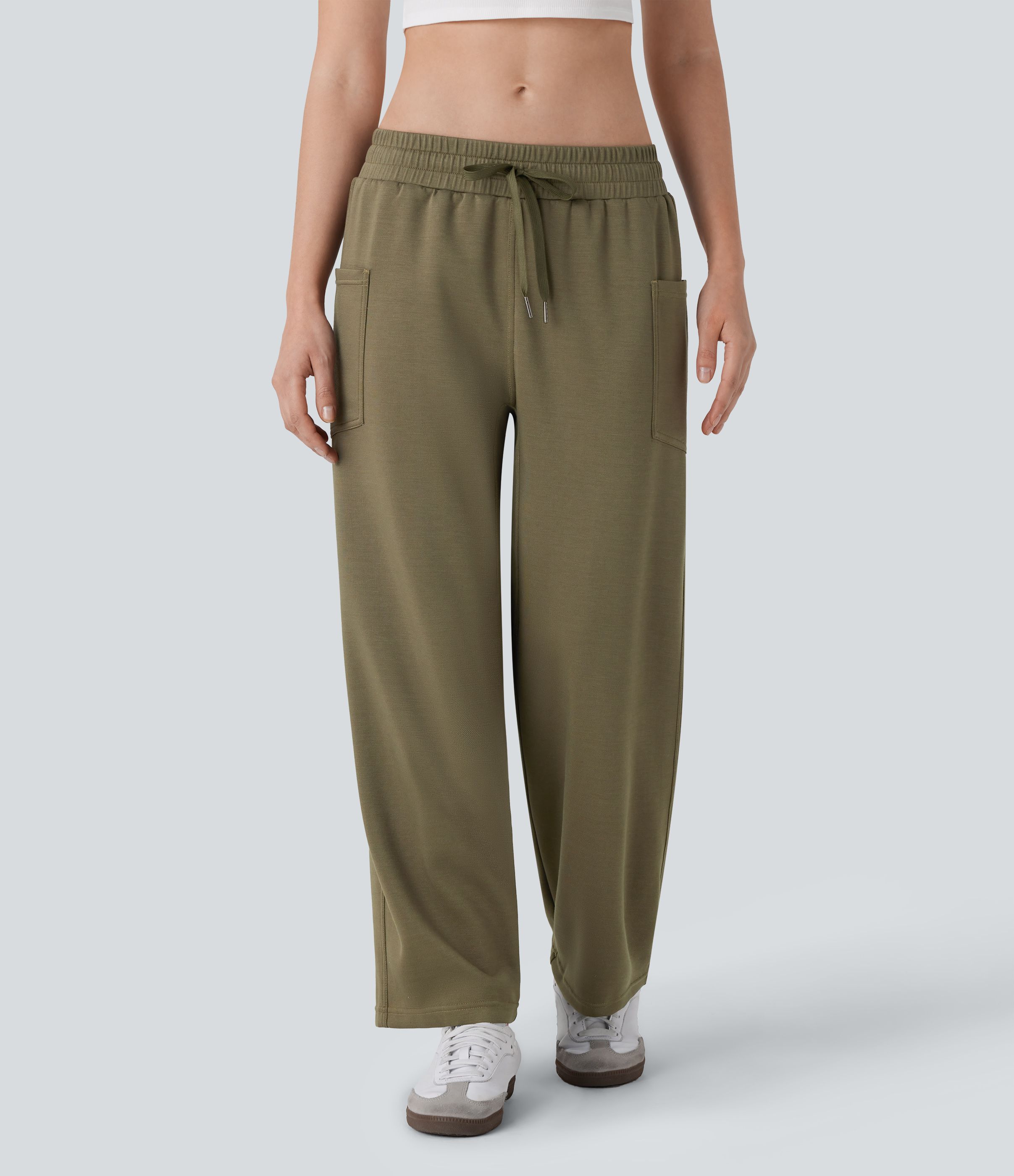 Pantalones casuales ajustados de tiro bajo con bolsillos laterales y cordón