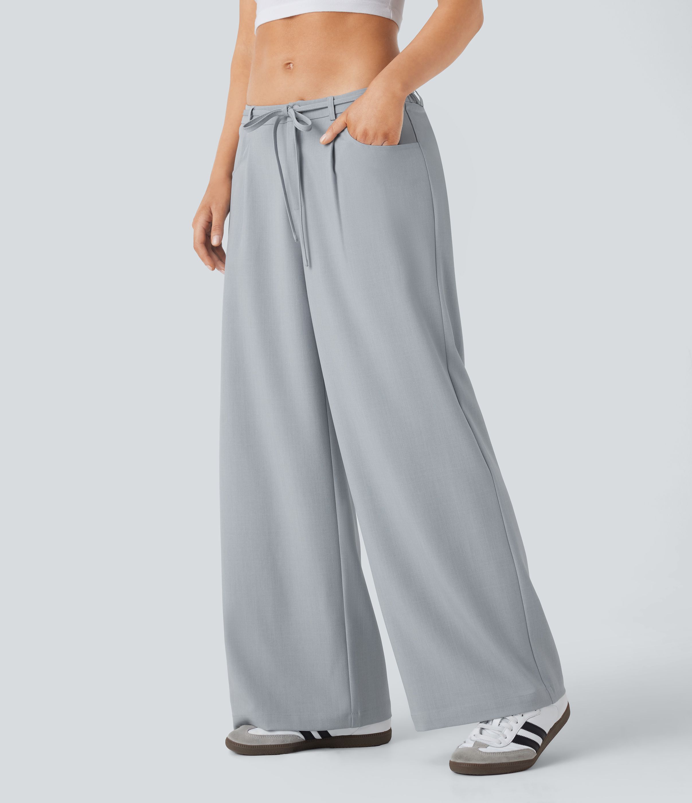 Pantalón pierna ancha bolsillo lateral delantero tiro bajo