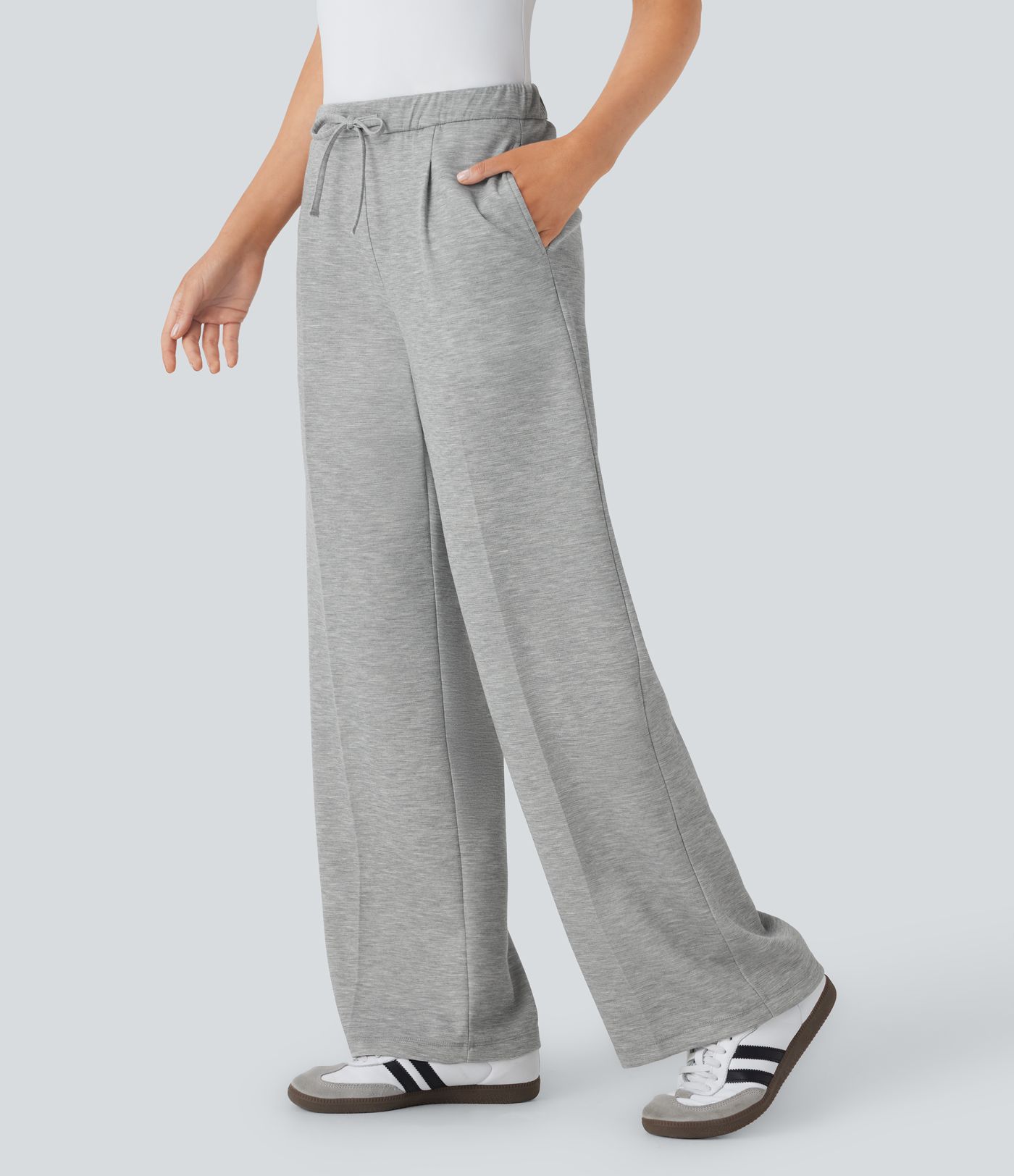 Pantalón oficina tiro medio cordón bolsillo lateral pierna recta