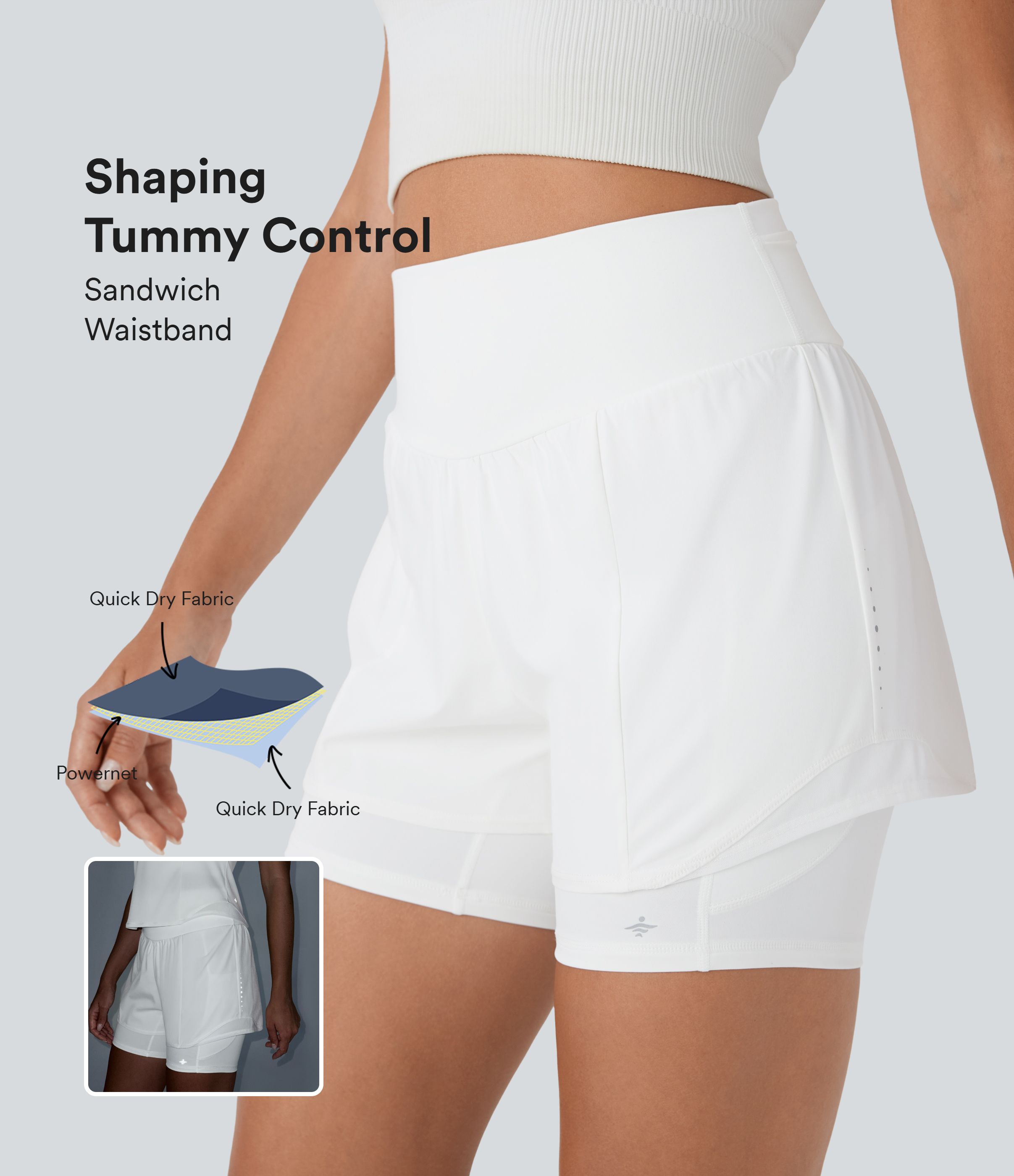 Pantalones cortos de running 2 en 1 SpeedWave™ SoCinched de secado rápido con tiro alto, moldeador de abdomen, detalles reflectantes y múltiples bolsillos