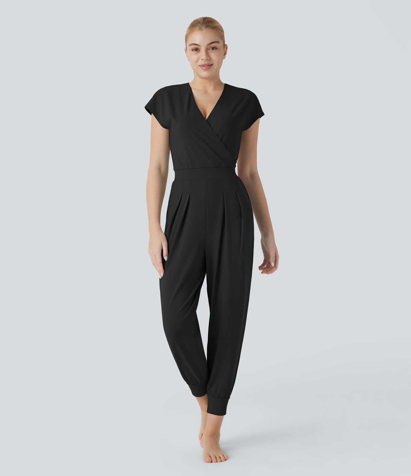 Mono yoga cuello V manga corta cruzada bolsillo lateral